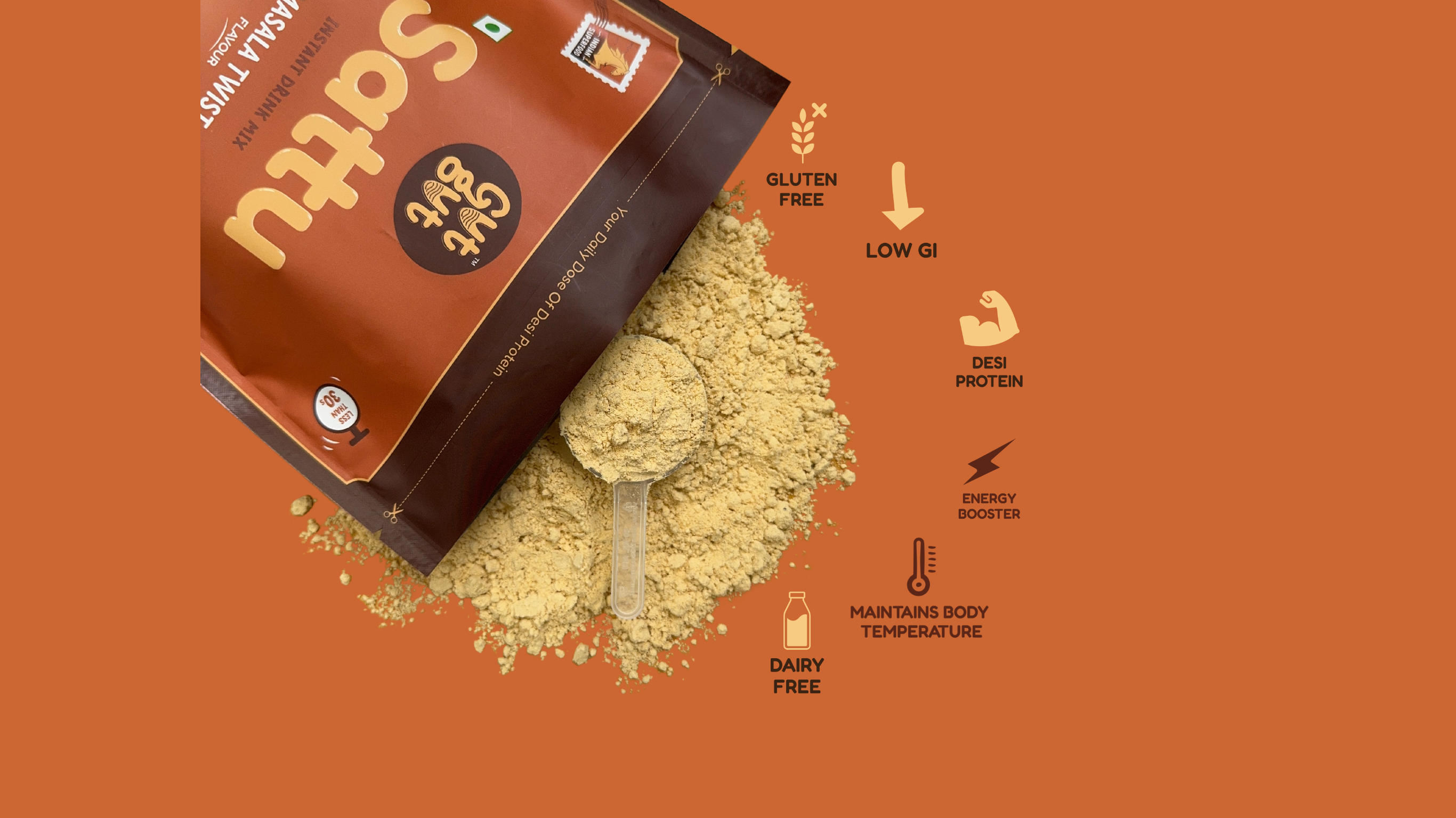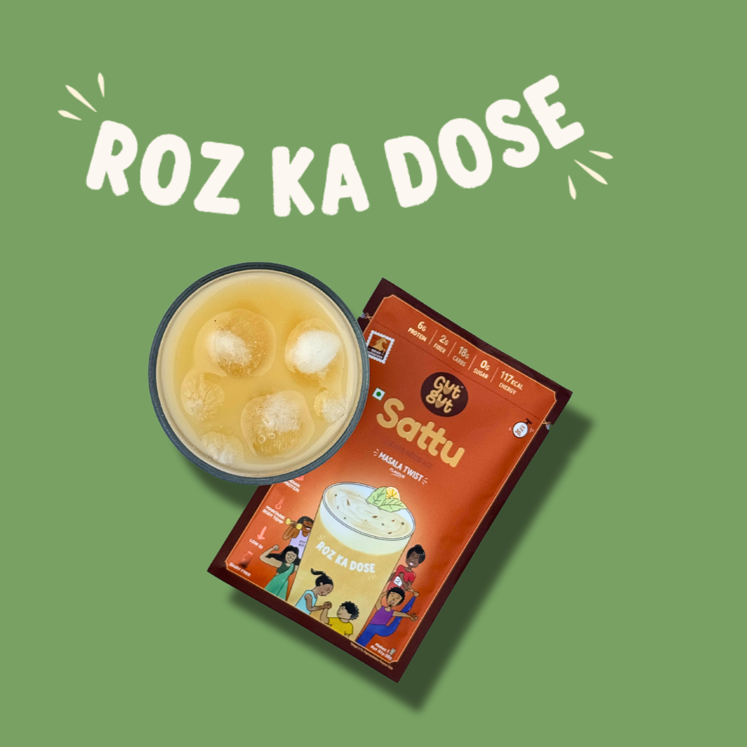 GutGut Sattu | Box of 30 Sachets – Masala Twist Flavour | Instant Drink Mix | Travel-Ready